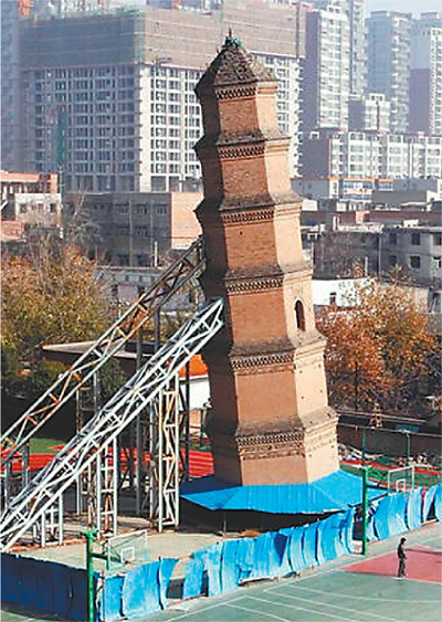 記者從西安市文物局獲悉:塔體發(fā)生嚴(yán)重傾斜的西安萬(wàn)壽寺塔,通過(guò)不斷地糾偏保護(hù),截至目前,已成功糾偏2米,萬(wàn)壽寺塔的搶救性保護(hù)工作取得階段性成果。